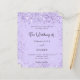 A violet, lavender coloured background. Decorated with violet faux glitter. Personalise and add your names and details.