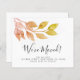 This stylish budget moving announcement card is decorated with minimalist watercolor foliage in shades of rust.
