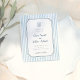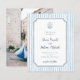 This whimsical wedding invitation features a navy blue hand-drawn frame against a light blue striped background. At the top of the invite, there is a doodle scribble illustration of a diamond ring in a seashell ring box. The details follow with the couple's names in charming script lettering. Ideal for summer, Italian, beach, yacht, and coastal wedding themes. Cards reverse to an engagement photo of your choice. Edit most wording and text colors to make this sweet wedding invite fit your event needs and personal style. As part of Zazzle's budget selection, this sheet doesn't come in standard card sizes. To get this design on a standard card, you can find it in the collection or use the Zazzle Make Machine to transfer it onto your preferred product. View the collection linked on this page for the full wedding suite or visit our store for more wedding invitations.