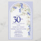 Elegant 30th Birthday Party invitation template features a Boho floral arch made from white daisies and blue wildflowers. This item is part of the Boho Arch Blue and White Floral Collection.