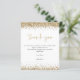 Budget White Gold Glitter 2024 Graduation Thank You. A budget price smaller (4.5 x 5.6”) semi-gloss which is a 110 gsm card stock, similar in thickness to a postcard. NOTE there is ONE per sheet.. Elegant gold faux glitter confetti borders are at the top and bottom and also on the back. Graduation is set in a modern handwriting style. Easily personalise the rest of the text to your own.