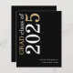 A value for money BUDGET alternative on a smaller size 4.5 x 5.6” semi-gloss 110lbs weight, which is of similar thickness to a postcard (however is not suitable to use as a postcard.). PLEASE NOTE there is ONE per sheet. Budget White Gold Text 2025 Black Graduation Announcement. A modern stylish typographical design to announce the news of your graduate, with stylish large typography rotated and to the left hand side at the top in white and gold on a classic black background. Easily personalise the rest of the text. including your message on the back