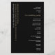 BUDGET Stylish White Gold Text Black Wedding Program. A budget price size 5.5” x 8.5”, on an elegant 110 lb LINEN stock – for a luxury feel at great value, this is perfect for menus, as well as invitations and programs etc. This budget size alternative is also available in other paper choices. The SEMI-GLOSS 110 lb card stock is about the same thickness as a postcard, so also works well for invitations. The FELT 100 lbs paper is buff coloured, NOT white, so adds a rustic touch. The MATTE 80lbs paper stock is bright white, for crisp printing, great for your menus and programs, whilst the SATIN 80lbs paper is thin and light A modern typographical design with Program in large typography in white with the ”r” in gold, rotated and to the left hand side on a background of black.