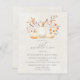Elegant white pumpkins are nestled in red, orange and sage green leaves and wildflowers.