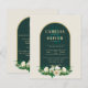 Beautiful white magnolia shade Roses with emerald, sage green leaves, gold accents and arch graphics feature here along with trendy typography layout. This wedding item is part of a larger collection which includes wedding invitations (budget and traditional) RSVP cards, Save the Dates, Wedding Welcome Sign and more. View the attached collection to see them all. This elegant and modern design is perfect for your classy floral wedding, whether it be spring, summer, fall or winter. 🎨 Design by LeahG® weddingdesignchic.com and 100xgifts.com. 📌 PIN this to your Pinterest wedding moodboard. ⬇️ VIEW ALL THE PRODUCTS FEATURING THIS DESIGN VIA THE TAB BELOW ⬇️