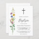 This budget Baptism invitation is decorated with wildflowers and a cross.