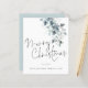 Watercolor Winter Foliage Merry Christmas Card. A budget price SMALLER 4.5” x 5.6” flat card for your festive greetings on a shiny SEMI GLOSS 110 lb card stock (similar to the thickness of a postcard) PLEASE NOTE: The envelope supplied with this card is slightly larger than the card itself.. Contemporary style with elegant handwritting style set script for the main header and easily personalise with your greeting and names at the bottom. Beautiful frosty coloured watercolor teal and powder blue foliage flows down from the top. A coordinating powder blue is on the back which can be changed to another colour if you like via customise further.