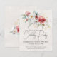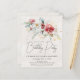 Red and white winter watercolor flowers are nestled in soft sage green leaves and foliage. Gold snowflakes add a festive touch. An elegant, simple and modern script gives it a open and airy vibe. There is also a winter floral boquet with a touch of golden snowflakes on the back.