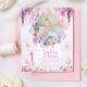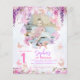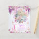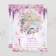 Design features pastel colours like lavender, mint, and baby pink, adorned with gentle wisteria flowers and playful butterflies. These elements create a soft, magical feel. The invitation features the words "Flutter on over" in shiny gold glitter script, adding a touch of sparkle and fun. This simple yet enchanting design is perfect for a joyful birthday celebration like 1st birthday, 7th birthday and more.
