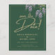 Pretty watercolor illustrated summer purple, lilac, lavender color Wisteria flowers with green leaves, gold font and modern typography against an emerald green background.⭐ Design by LeahG™ Founder of the Low Budget Wedding Network®. Congratulations on your engagement. 📌PIN this design to your wedding moodboard on Pinterest and enjoy your wedding planning journey. 🥰 Your friends and family will love this modern trendy elegant wedding item. options (from 0.30) view the attached collection to see them all. ⚠️ NOTE that paper weight and size reflects in the prices.⭐ Most of my designs include template fields on both sides (where allowed by the product) to ensure you get the most value and practical benefit. In the case of invitations, this enables you to include rsvp, gift registry, wedding website, reception details, and, in the most recent designs, a qr scanning code. For other items, you can add text or images as required for your event. Enjoy your wedding planning journey. ©Design and Text LeahG™ ⭐