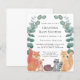 This Budget Grandma's Baby Shower Invitation is decorated with watercolor woodland animals and eucalyptus greenery.