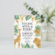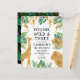 Celebrate your little wild thing's third birthday with this "Young, Wild & Three" jungle safari themed invitation, featuring gold faux foil animals (giraffe, lion and monkeys), gold and green jungle foliage, and a sprinkling of gold confetti. Add your child's name and party details in black text on a white background. A coordinating jungle foliage pattern in green and gold on a black background decorates the back of the card.
