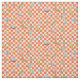 A pattern drawing of budgies in cute manga style with orange chequered pattern for the background. Featuring many budgie mutation colours: green, yellow, white, blue, violet and mauve.