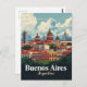 A colorful, vintage-style travel poster illustration showcasing the historic skyline of Buenos Aires, Argentina. The image is dominated by the city's unique architecture, featuring numerous buildings with distinctive red and copper domes, set against a bright, cloudy blue sky. Lush green trees line the foreground, with the city name "Buenos Aires" and "Argentina" displayed on a dark blue banner at the bottom.
