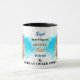 A portrait of a beautiful buff or blonde coloured American Cocker Spaniel Dog is the feature on two sides of this mug. Each image is placed on a bright blue splatter background. Between the two images is the text that describes this loyal and playful companion, with "the AMERICAN COCKER SPANIEL" in black at the bottom. All the text is easily customised to anything you'd prefer so that you may describe your own loyal friend.