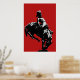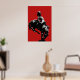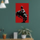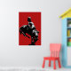 Our striking poster print is based on a statue of Wild West showman Buffalo Bill Cody situated in Dennistoun, Glasgow, Scotland, UK, of all places. Buffalo Bill staged a Wild West show there back in 1891 along with Annie Oakley. Bill and his horse are silhouetted in black and treated with a pale blue wash on a deep red background.