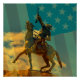 Buffalo Bill Cody statue Cody, Wyoming & USA flag Poster