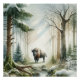 Beautiful Watercolor Whimsical Winter Buffalo Bison landscape Scene Square Poster Print, frame this and display this beautiful poster print anywhere in a home or office.