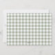 Custom-designed photo holiday card featuring rustic Christmas cotton wreath design on the front, sage green buffalo check pattern on the back.