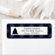 A pattern of black buffalo check plaid and vintage blue feels fresh and modern for the holidays with a solid black Christmas tree graphic and custom return address text.