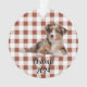 Celebrate your loved ones with this cosy, customisable ornament featuring a classic red and white buffalo check background. Add a favourite photo—whether of your family dog, a cherished pet, or a holiday snapshot of family or friends—and personalise the two lines of text, like "Champ 2024" or your own special message. This rustic, heartwarming ornament is perfect for adding a personal touch to your tree or as a thoughtful gift for friends and family. Capture the warmth of the holiday season with this one-of-a-kind keepsake ornament!