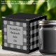 Classic grey and black buffalo check favour box. Text on both sides of the box is customisable. If you use the 'edit design' button/tool, you can also add your own images/photos. Other colorways available.