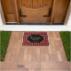 This door mat is embellished with a modern version of a classic buffalo check pattern in red and black with a yellow line accent. This design was created with an SVG image in which all of the elements as well as shapes, lines and text feature colours that may be customised by the buyer to any hue to coordinate with their décor.