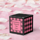 Classic pink and black buffalo check favour box. Text on both sides of the box is customisable. If you use the 'edit design' button/tool, you can also add your own images/photos. Other colorways available.