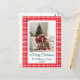 Share your festive cheer with a personalised touch this holiday season! This classic Merry Christmas postcard features a warm and inviting design with a timeless red and white plaid border, reminiscent of buffalo check or gingham. The main focus is your fun family photo, set within a crisp white frame.