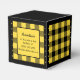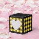 Heart yellow and black buffalo check favour box. Text on the back of the box is customisable. If you use the 'edit design' button/tool, you can also add your own images/photos. Other colorways available.