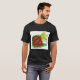 I give wanted to give this a 4 instead of a 5 because these Basic DARK T0shirts run unexpectedly SLIM or Narrow. Which is great if you do not have a potbelly, but I have a paunch. It isn't the shirt's fault that I've got a beer belly. The design and shirt itself is a quality cotton shirt. The color is more of a deep purple, but still a very pretty color. The Basic DARK T-shirts run a bit SLIMMER than the Basic Ts. The neck is a fraction narrower (or seems to be narrower) also. I'm a paunchy middle-aged woman and my neck is 12 inches (31cm) thick and the neckline fell about the same as in the photo of the man, and I had the desire to tug it a bit. So if you're a thick necked man or like loose shirts, be aware these are slimmer shirts. Once I get rid of my lockdown paunch it'll look great. The shirt washed well in cold water with no apparent bleeding. We don't have a dryer, so it hung dry. Did not shrink. Love the colors and the design. The design looks smaller on my shirt than it does on the model on-line. But still, it looks good on the shirt. The printing looks as it does on the model, just the size seems fractionally smaller. Washed garment in cold water, hung dry and design appeared unaffected.