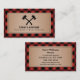A business card featuring axes on front and buffalo plaid background on front and back with black text. Personalise the text on front and back with your name and contact information.