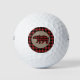 The background on this unique golf ball design is a red and black buffalo plaid pattern. At the centre is a tan circle banner with a matching red and black plaid silhouette bear image. This design matches golf head covers and other golf related items in our store.