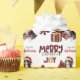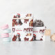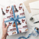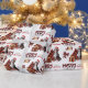 The repeated pattern on this cute Christmas wrapping paper is an image of a Bernese Mountain Dog wearing a red and white Santa hat, with a black and red buffalo plaid pillow behind him, and a coordinating gift package with a gold ribbon beside him. There's also a buffalo plaid bow and the matching text that says "JOY". Stylised red and black buffalo plaid text says MERRY CHRISTMAS", and your own signature is in two fields for you to customise.