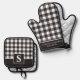 Buffalo Plaid Black And White Chequered Monogramme Oven Mitt & Pot Holder Set