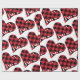 Buffalo Plaid Black Red Hand Drawn Hearts Wrapping Paper