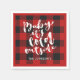Holiday paper napkin features red buffalo check plaid with white brush script "baby it's cold outside" typography. A trendy addition to your holiday party.
