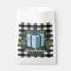 Wrap your holiday cheer in cosy charm with this festive Blue Buffalo Plaid Christmas Gift Favour Bag. Featuring a bold gingham pattern backdrop, a classic wrapped gift illustration, and accents of holiday pine botanicals. The cheerful Merry Christmas message is elegantly displayed in a mix of elegant script and modern typography, with space to personalise with your family name—adding a thoughtful, rustic touch.