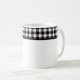 This ceramic coffee mug is shown with a lovely black and white color buffalo plaid.