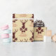 A red and black buffalo print deer head combines with a matching acorn and leaves to form an attractive pattern on this Holiday wrapping paper. Separating the repeated images is matching red script that says "Merry Christmas". The pattern is placed on a light gold background to form a unique and rustic looking Christmas paper. Be sure to see the matching products in our store.