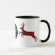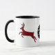 Rustic cabin holiday themed mug with graphics of two stags done in red and black buffalo style plaid. Personalise the white one letter monogram, on the black circle, to suit your needs. #holidayz