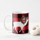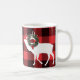 This holiday design features a buffalo plaid background with two white silhouetted elk with a Christmas wreath on the antlers. Select from the 11 oz or 15 oz ceramic mug in a variety of styles or another style drink ware where the design fits appropriately.