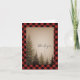 A thank you card featuring an illustration of evergreen trees over a brown background with a red and black buffalo plaid border. Text says, "Thank You." Coordinating wedding suite is available at Jill's Paperie.