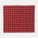 This comfy and cosy fleece blanket shown in a black and red buffalo plaid print.