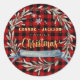 Buffalo Plaid & Gold Script Family Christmas Sign Classic Round Sticker