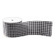 Grosgrain ribbon is shown in a black and white buffalo plaid print.