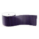 Grosgrain ribbon is shown in a black and purple buffalo plaid print.