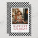 Buffalo Plaid Happiest Holidays Photo Holiday Card in black and white chequered plaid.