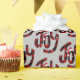 Black and red buffalo plaid with snowflakes and JOY text on silver grey background.