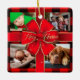 Buffalo Plaid Merry Christmas Bow Photo Collage Ceramic Ornament